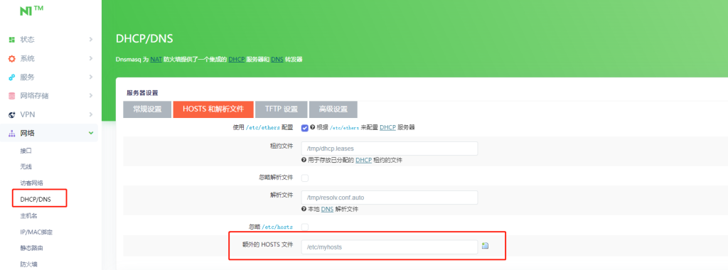 第三步:进去N1的openwrt系统中设置,让myhosts文件生效
