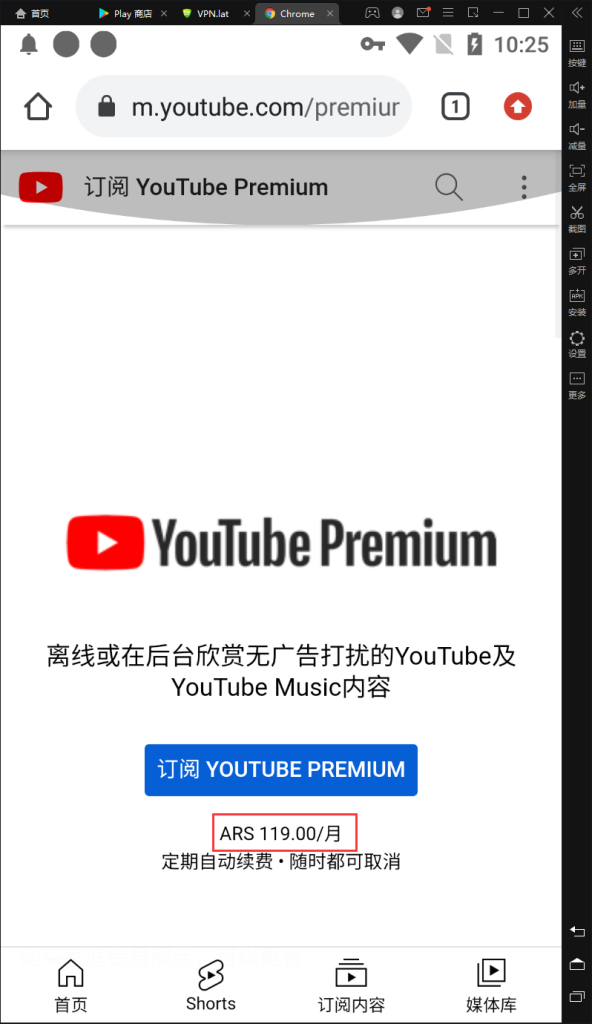 订阅阿根廷 YouTube Premium