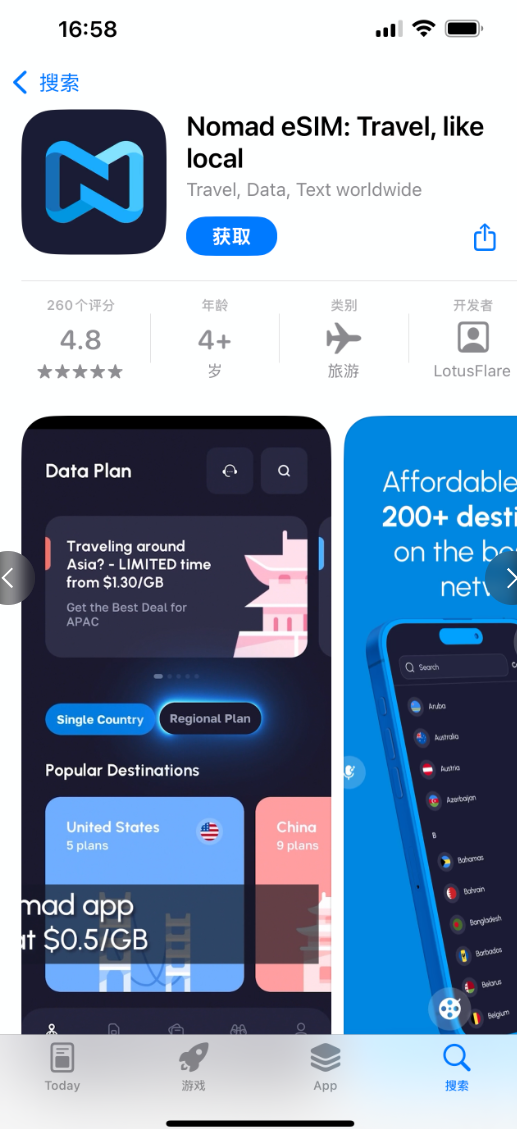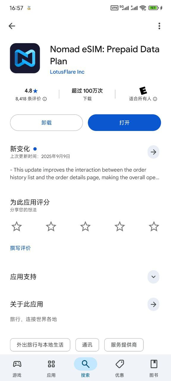 - 在手机上打开App Store或Google Play,搜索下载并安装“Nomad eSIM”应用