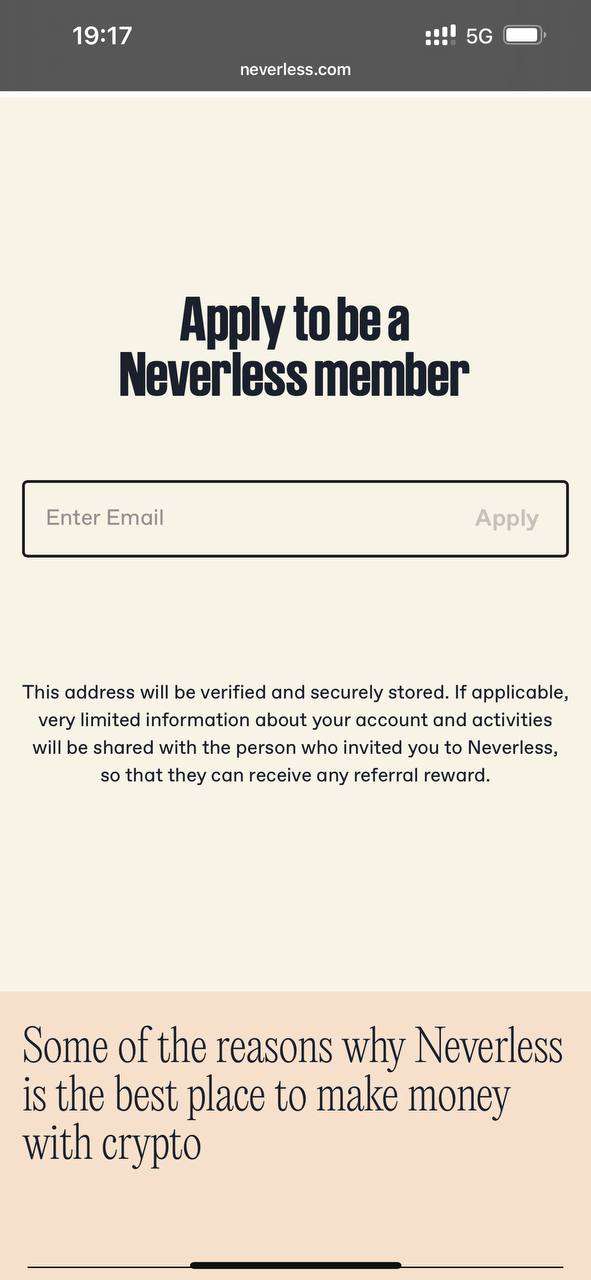 - 下载官方APP,IOS需要欧区AppStore里搜索Neverless下载,Google play美区就可以,也是搜索Neverless下载。(或者通过上面的网页直接下载)