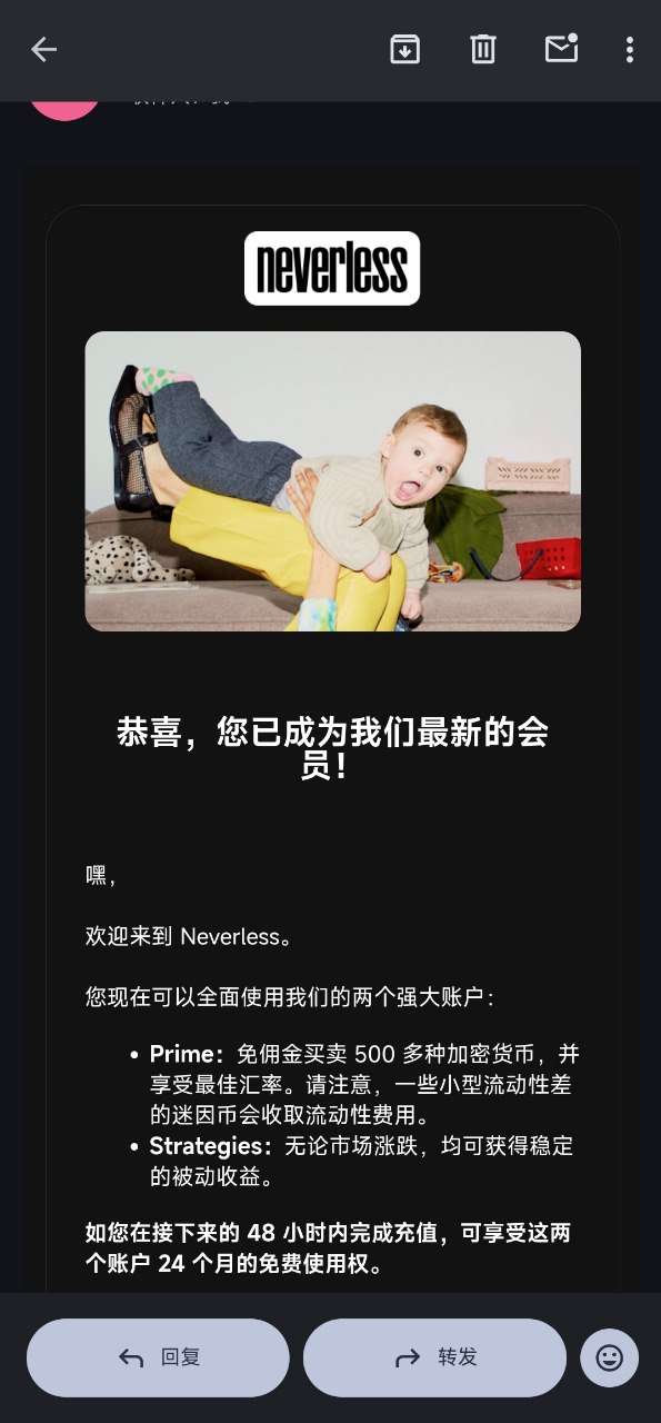本文将手把手教您从下载、注册到入金,同时白嫖20USD,快速开启Neverless的免佣金加密交易之旅。